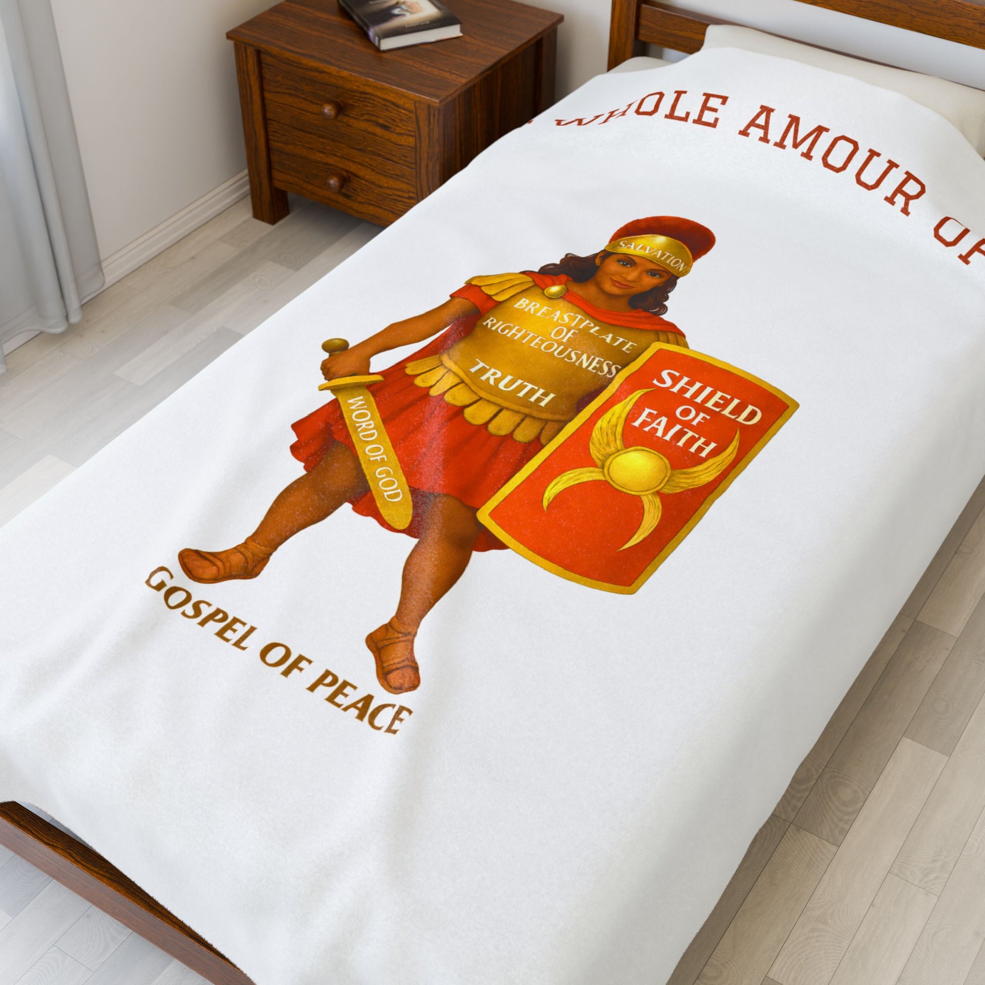 Christian Armor Velveteen Plush Blanket — "The Whole Armour of God" Shield of Faith Design